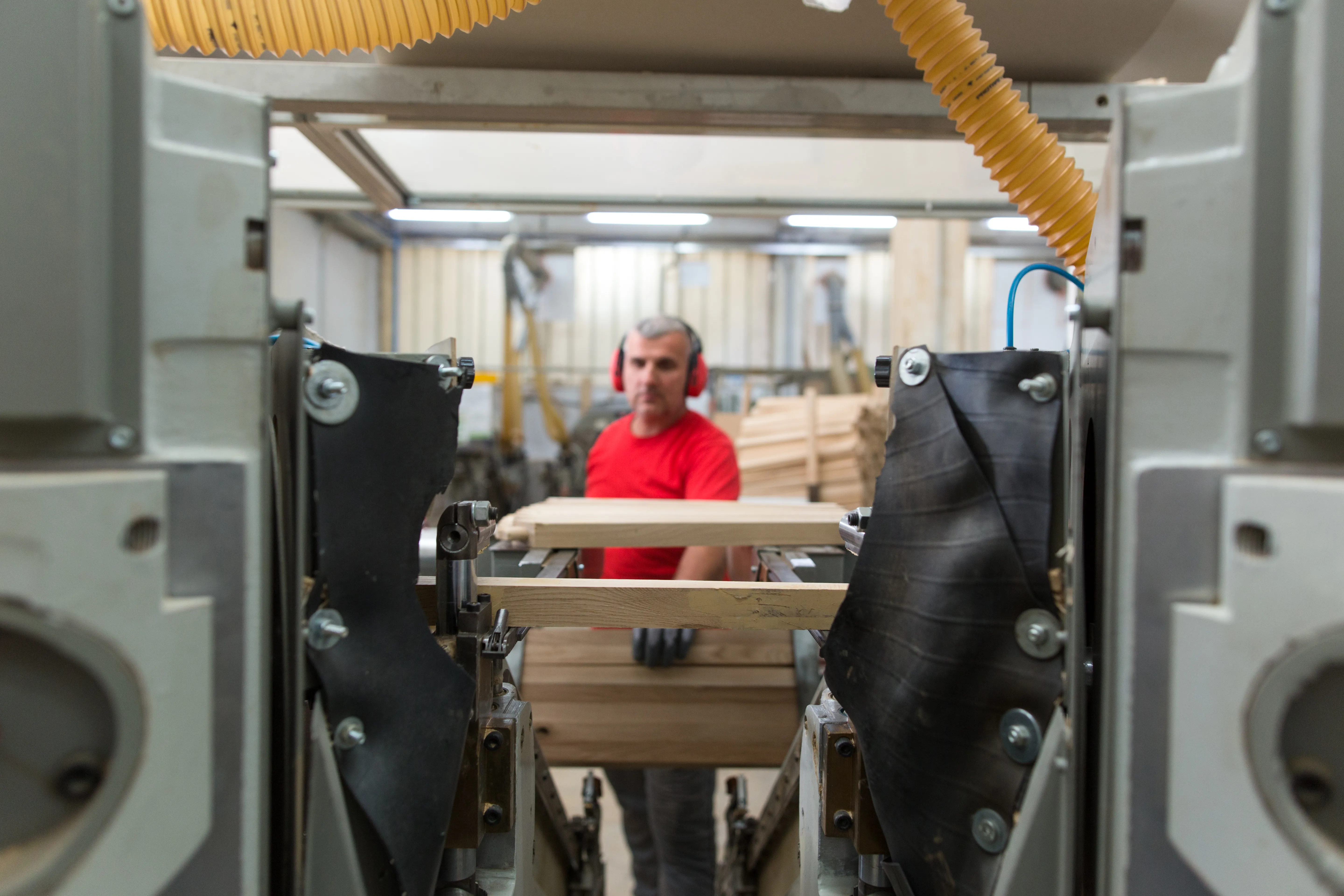 Beyond certifications, we source the bulk of our timber regionally rather than from distant suppliers, reclaim wood waste as biomass fuel for our drying kilns, and run our finishing operations to European emissions standards.